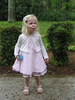 Here is Emma before church last Sunday. She looked so sweet in this picture that I just had to post it. She is wearing a white linen dress and a pink sweater. When she came home from church, there was crayon all over her dress and sweater. She put crayons in her pocket which left marks all over the pockets. Luckily it washed out. I would have been sad if it didn't. I really like that dress!